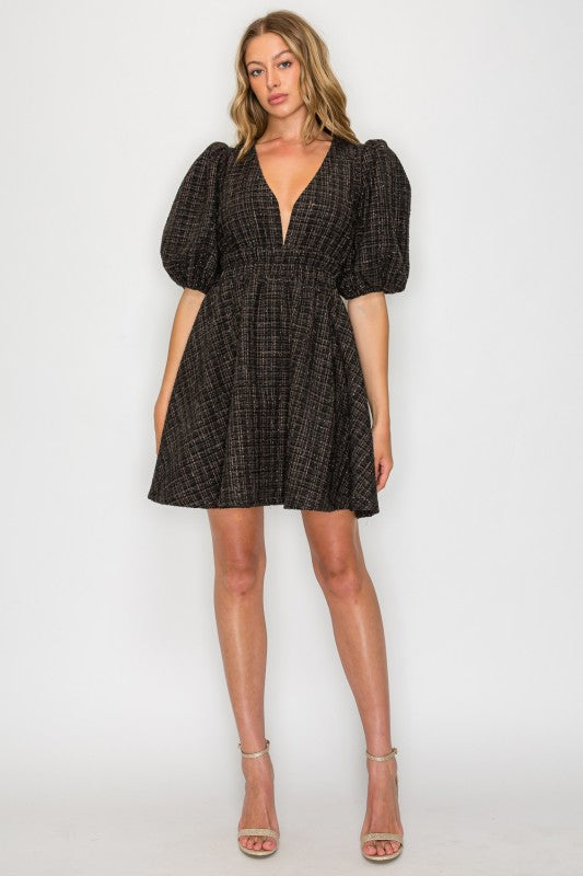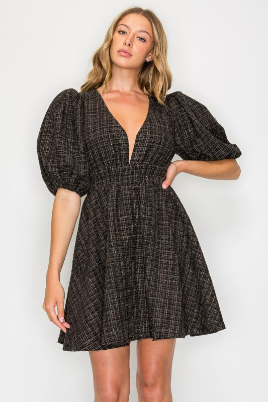 Ebony tweed puff sleeve dress by Meet Me in Santorini