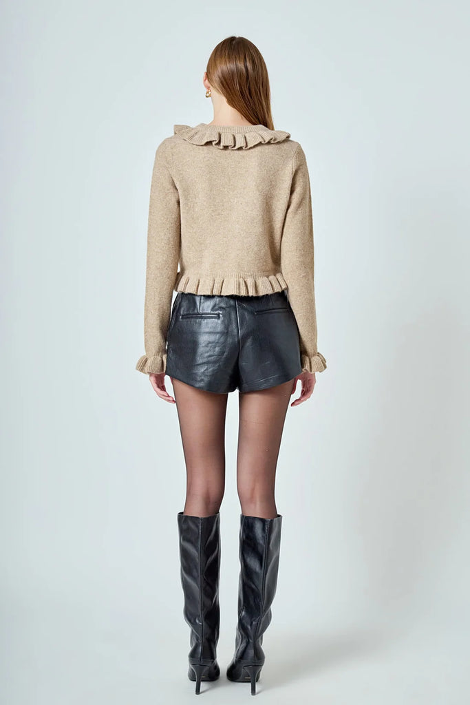 Ruffled v neck cardigan tan by Endless Rose