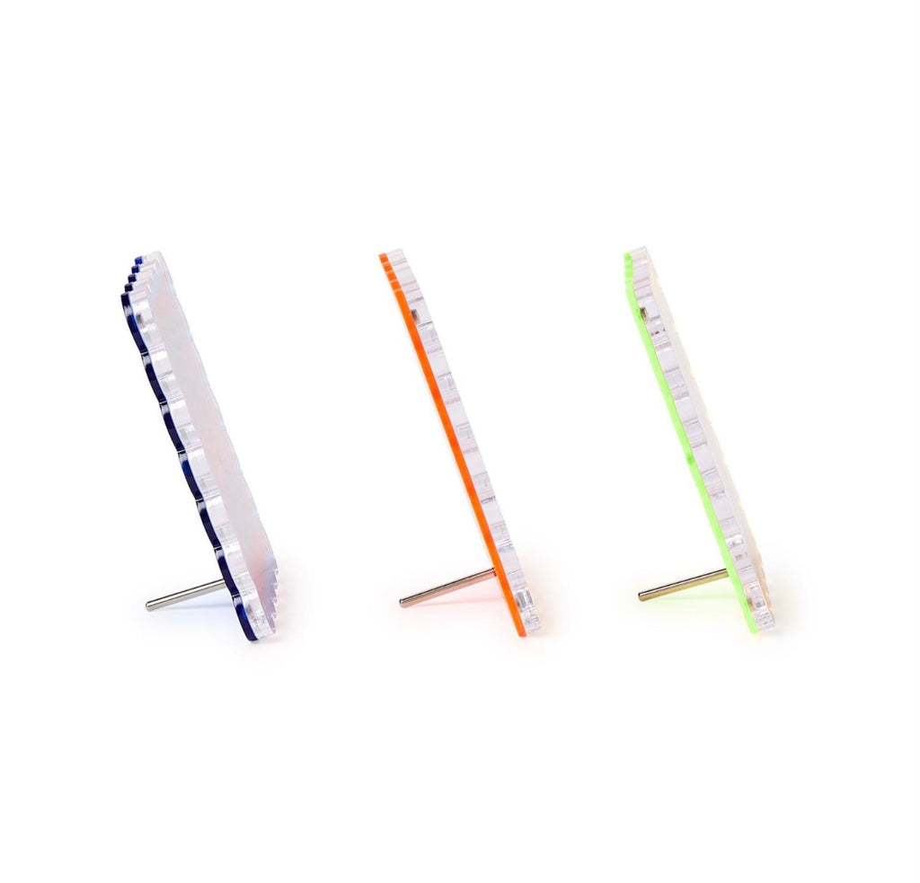Metal rod stand included for versatile display options: stands vertically and horizontally