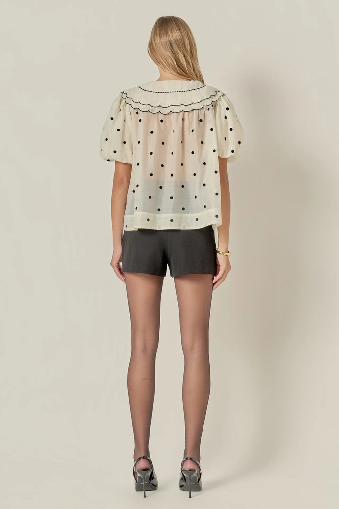 Scalloped collar sheer polka dot blouse by English Factory
