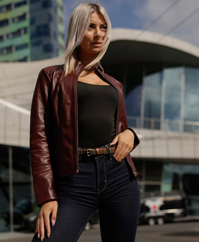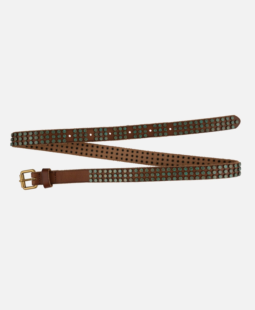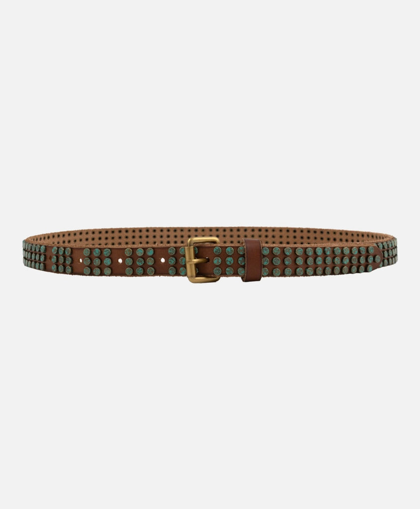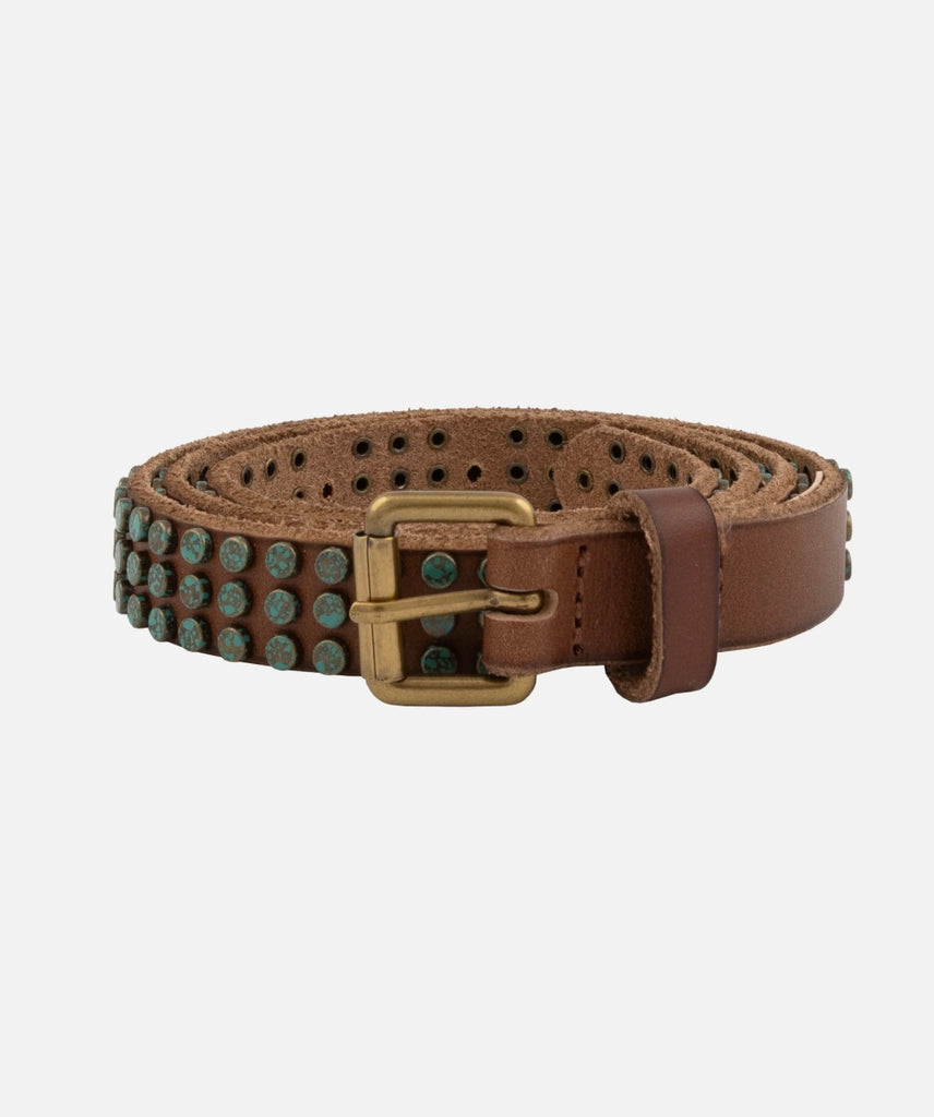Leather belt with turquoise patina studs cognac by Amsterdam Heritage